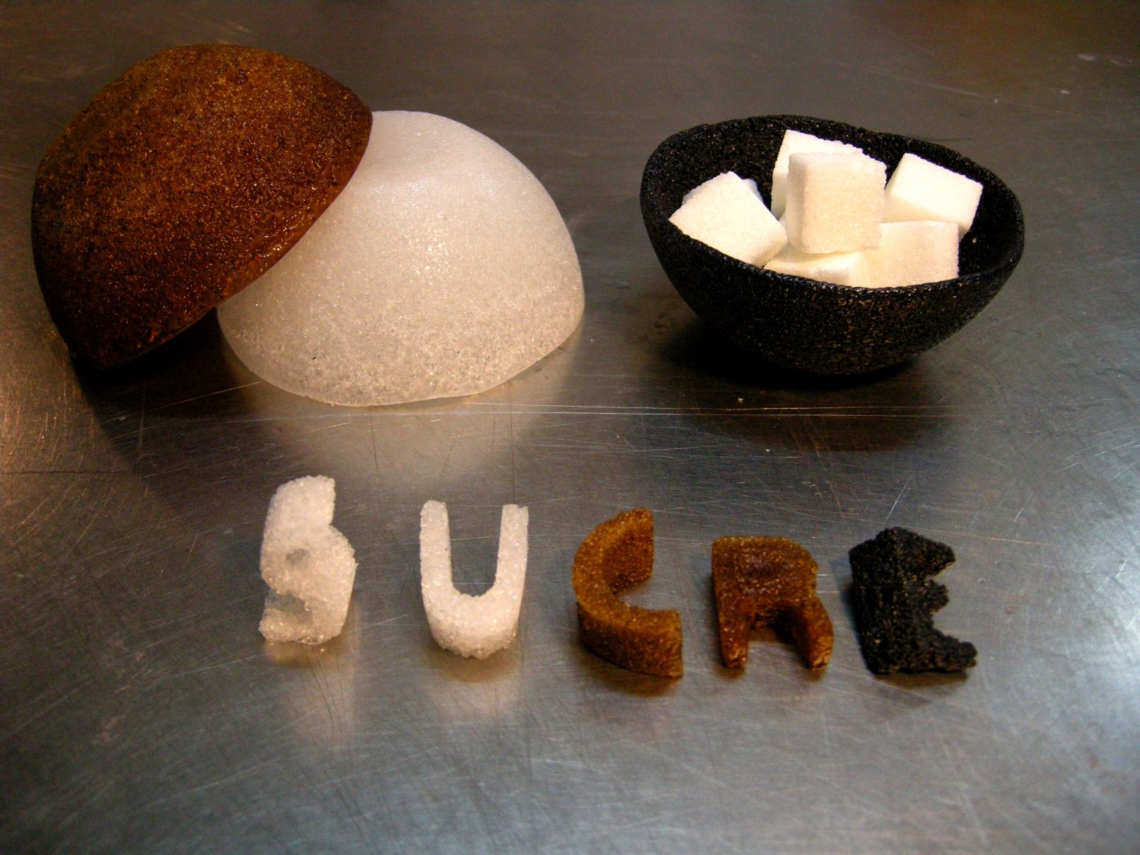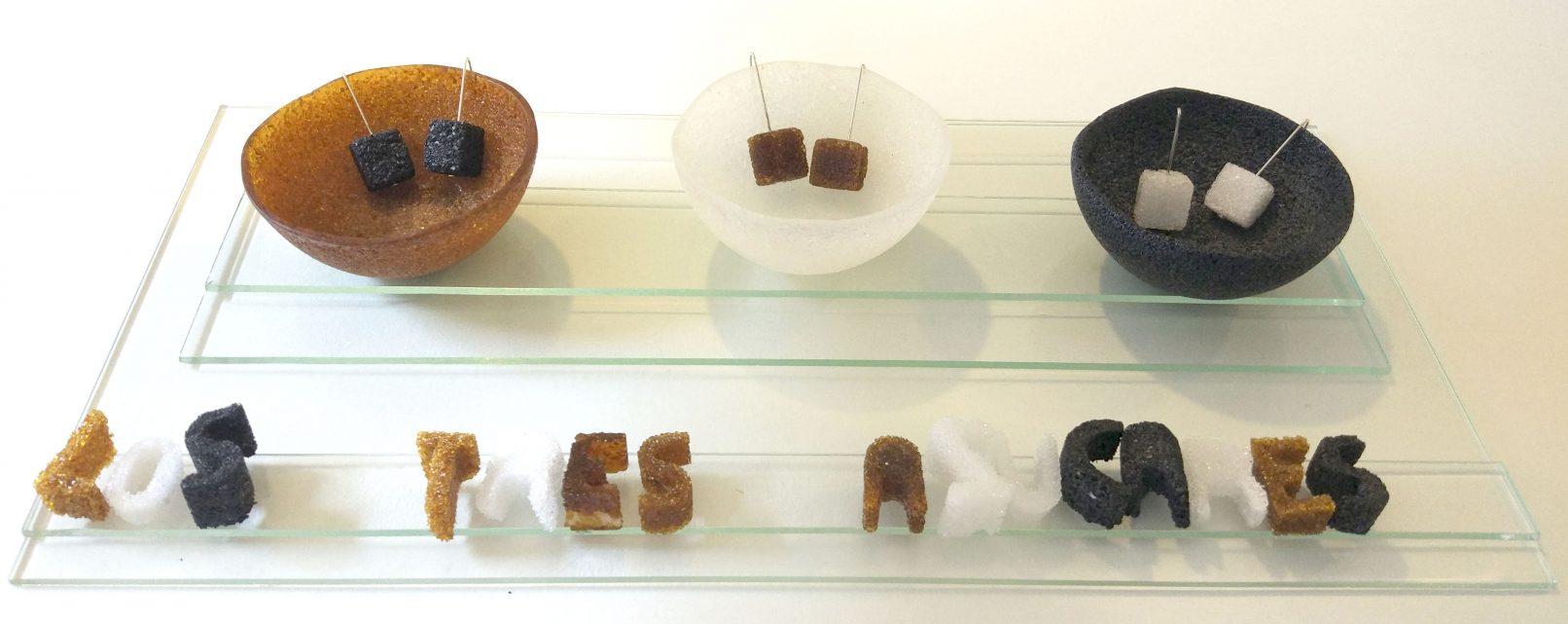 Imitación, trampantojo de los tres azúcares, de caña, el blanco y el carbón de azúcar.